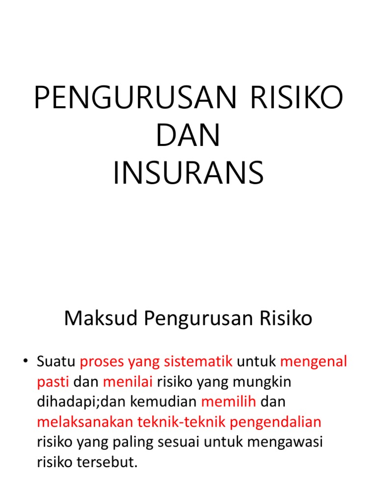 Bab 4 5 Pengurusan Risiko Insurans Pptx 4 5 Pengurusan Risiko Insurans Hasil Pembelajaran A Mentakrif Maksud Pengurusan Risiko Dan Course Hero